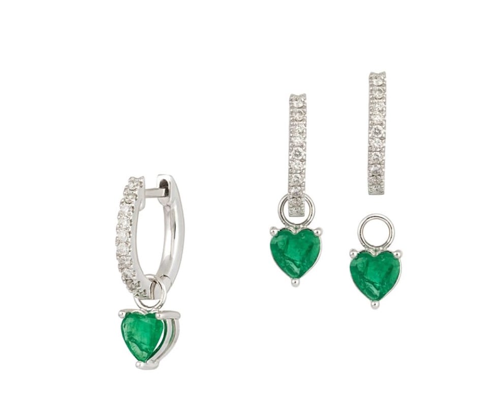 “Hoy en día, tal y como está la situación, el oro y el diamante son una reserva de valor. Son lo mejor para invertir ahora. Es lo último. Siempre se ha hecho, pero no sabes la subida que han experimentado. Son un valor en alza, es lo que la gente más busca”, explica Lisi Fracchia, gemóloga y perito en gemas, para dejar claro que el oro y las piedras preciosas con la mejor apuesta e inversión económica en 2025. También para invertir en tu pareja y aceptar con nota. Para ello, hazte con este conjunto de pendientes en oro blanco 18K con accesorios de corazón en esmeraldas. PVP: 1.800€. www.lisifracchia.com.